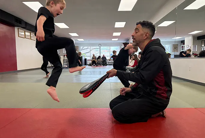 Self-Confidence: Our dojo environment, built on respect and encouragement, helps our students step out of their comfort zone and grow in confidence and belief in their abilities.